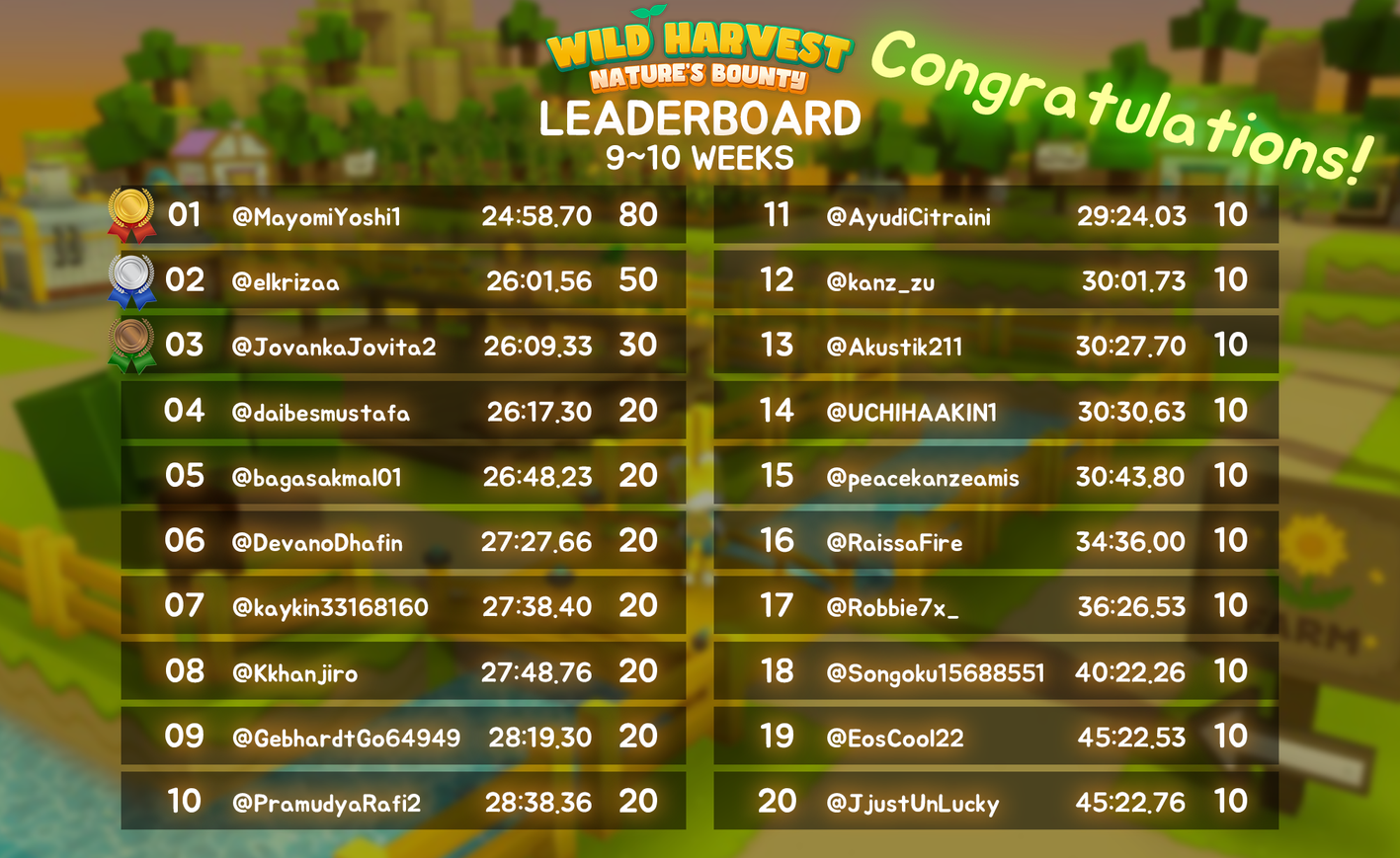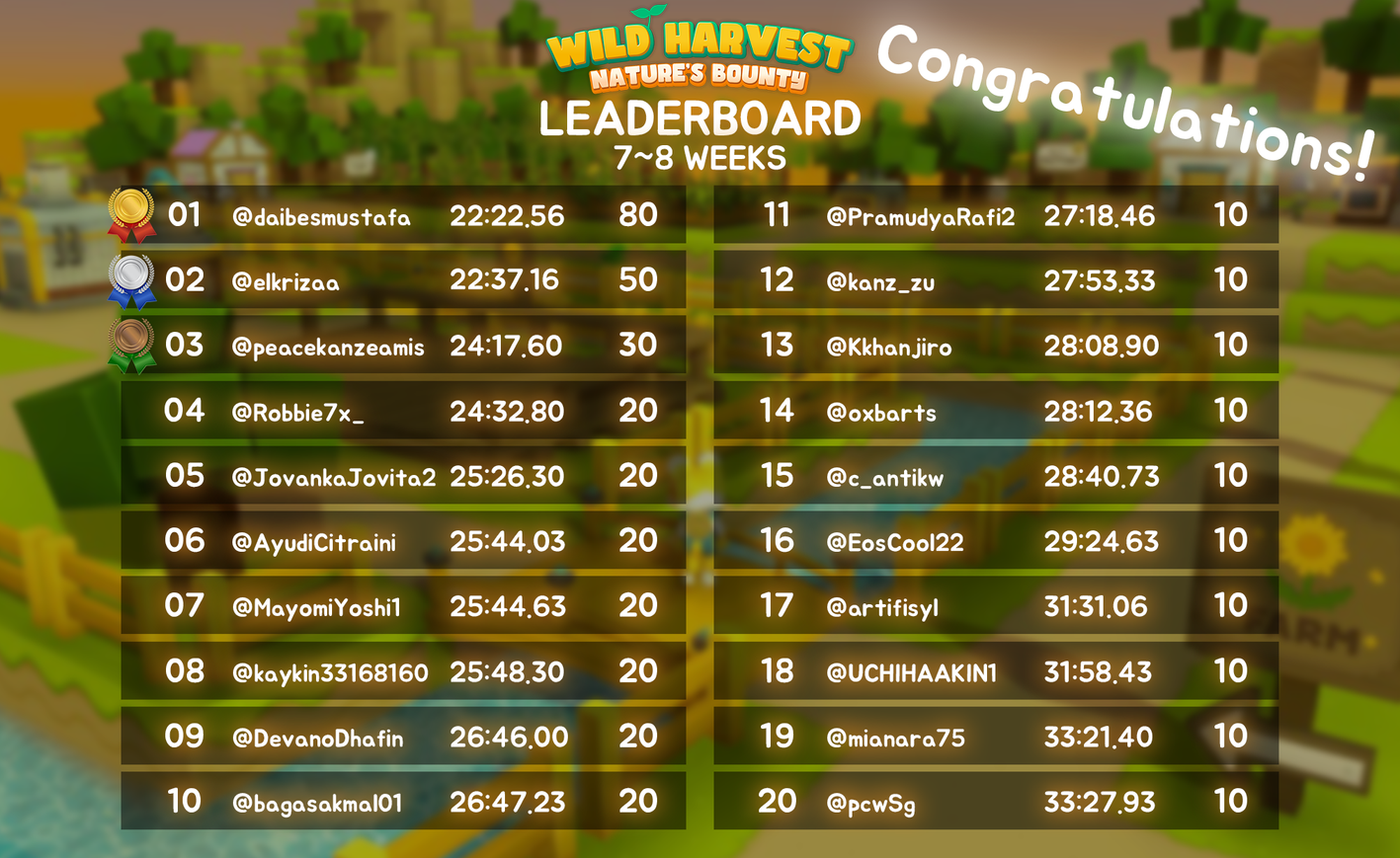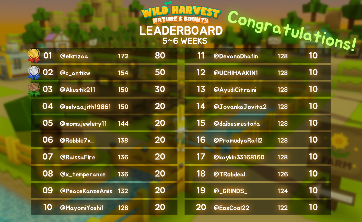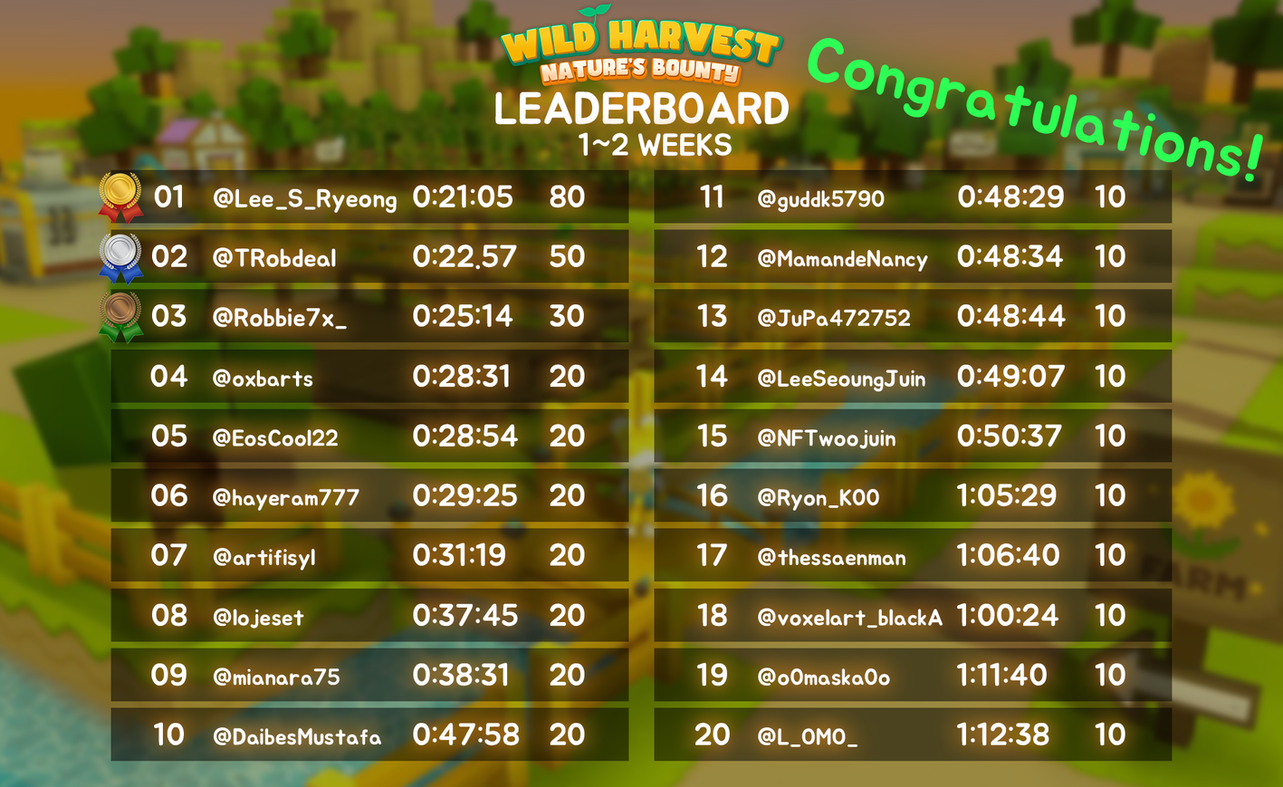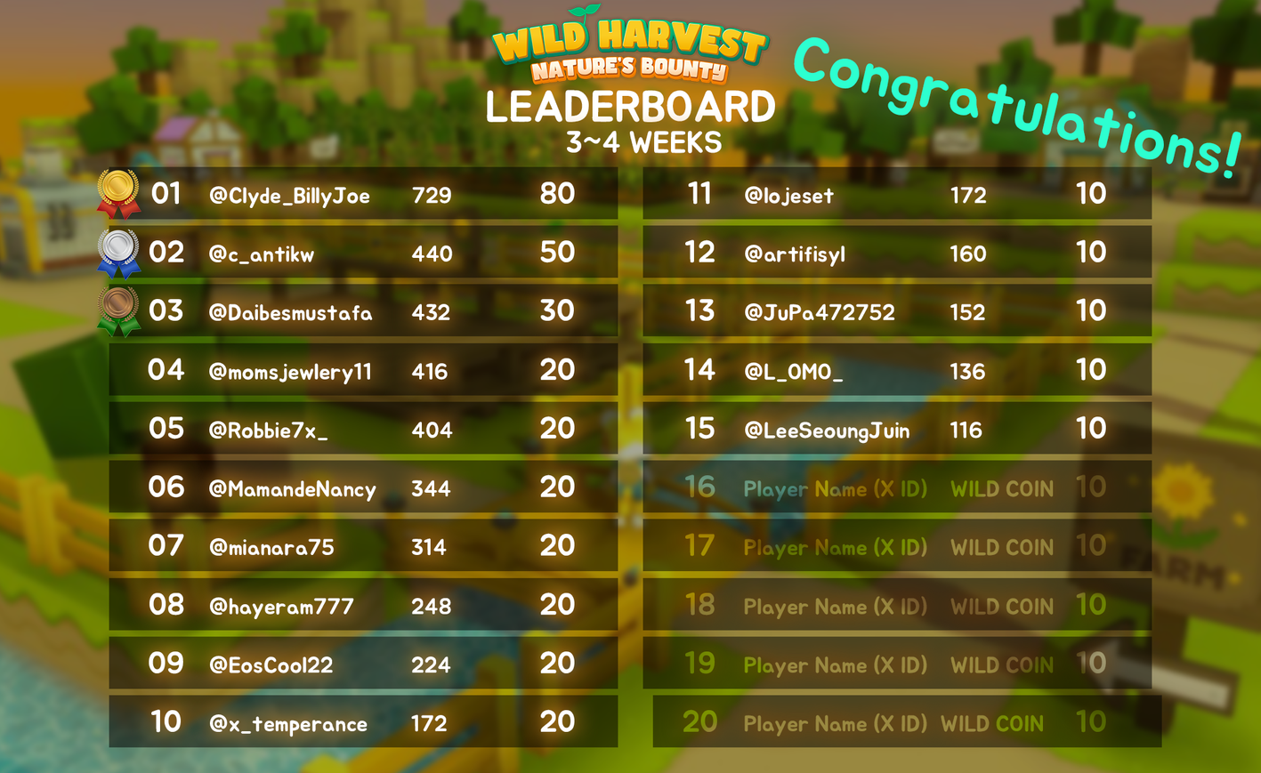 보상: 리더보드 상위 20명에게는 다음과 같은 보상이 주어집니다: